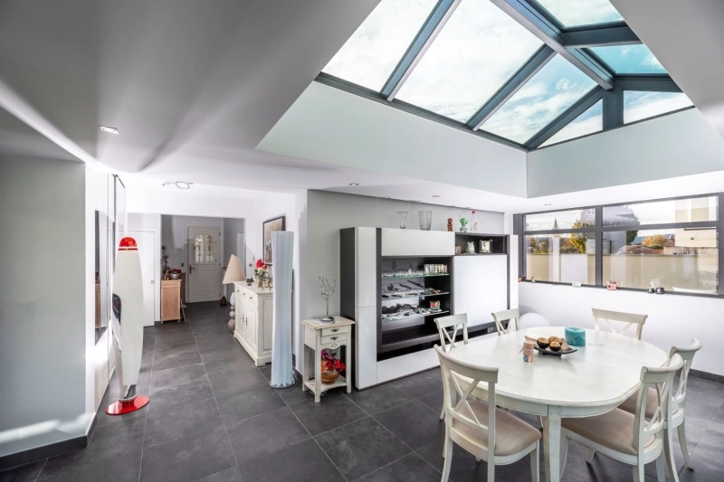 L’extension est pensée pour maximiser les apports naturels tout en assurant un confort thermique optimal.